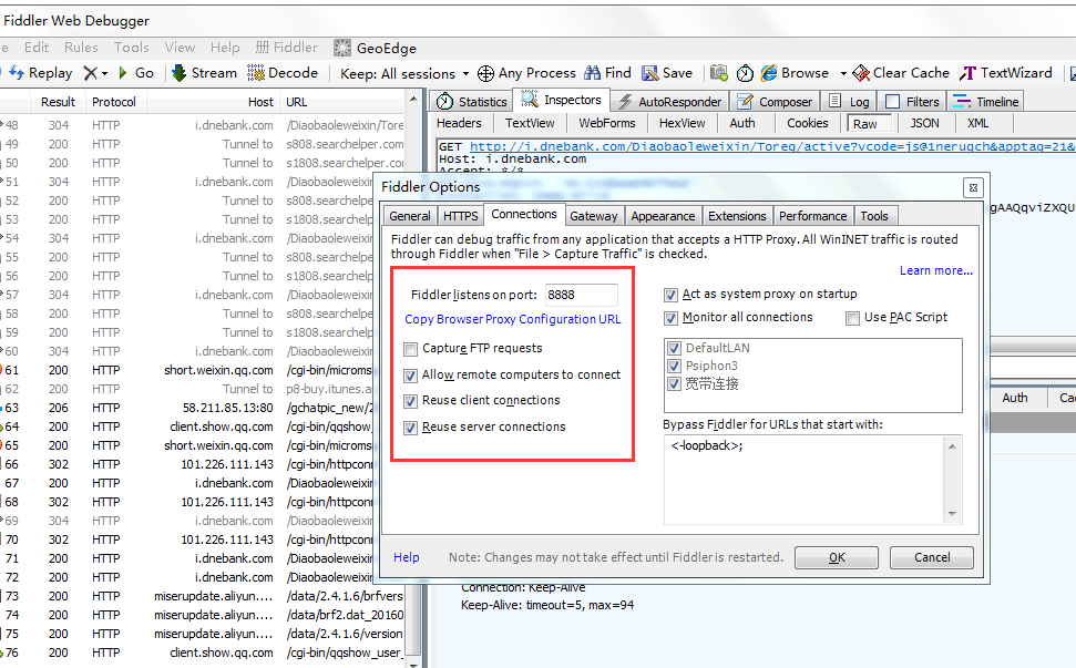 5-1:安装Fiddler,然后在菜单的Tool中,选择Fiddler Option,按下图进行设置