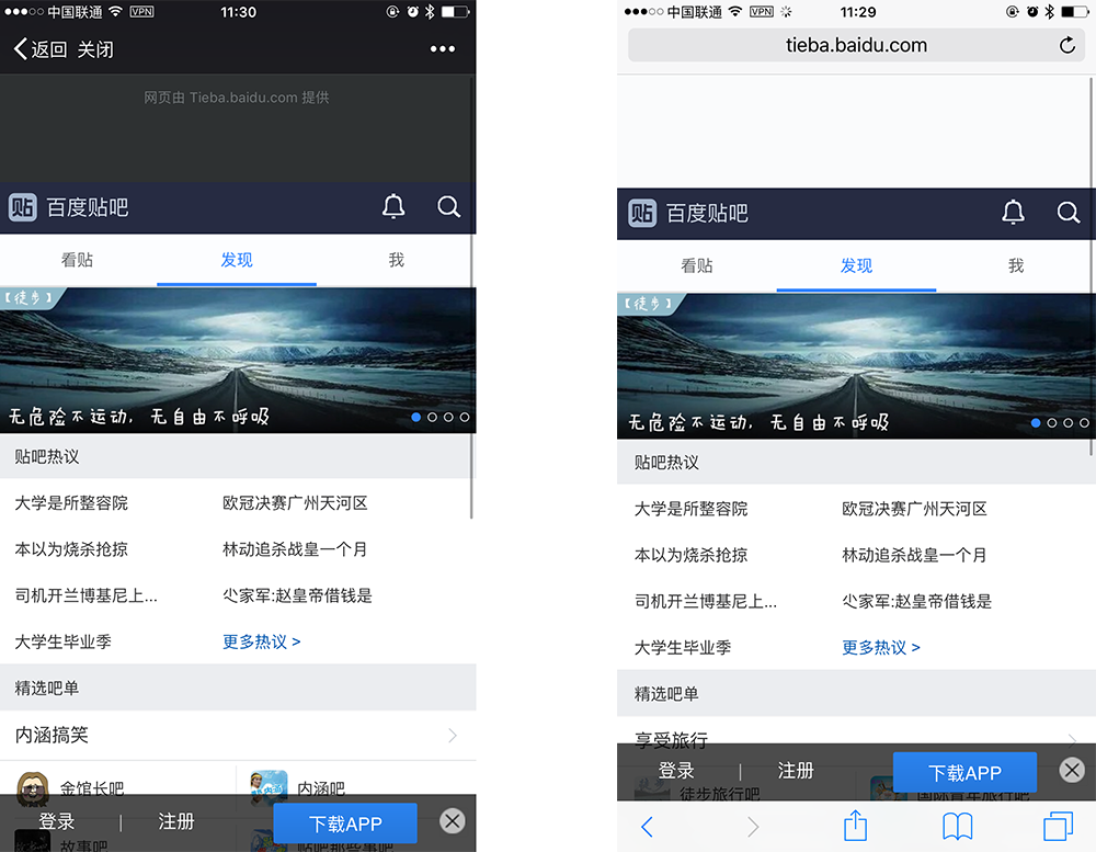 在Safari和微信浏览器中,访问网页,在最顶部下拉和最底部下滑,会有如下图这种橡皮筋效果。