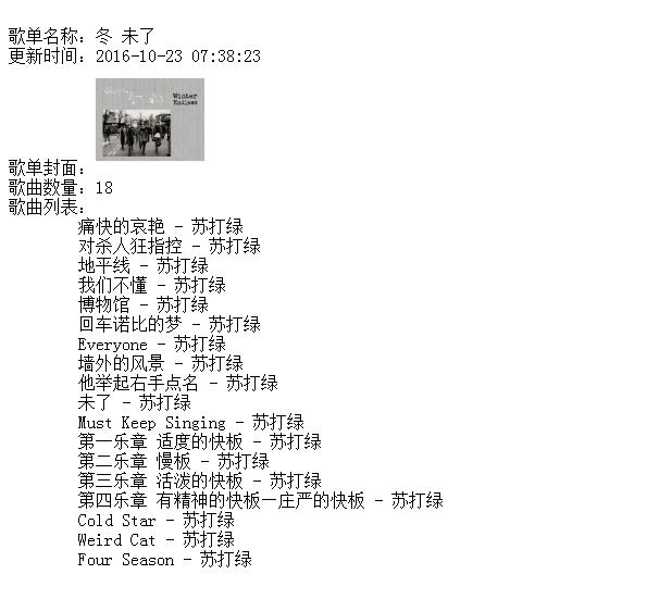 数据中能想到的需要的字段,基本都能满足,比如歌单信息,创建时间、更新时间、播放次数、分享次数、歌曲列表,歌曲专辑,歌曲发行公司、专辑封面等……