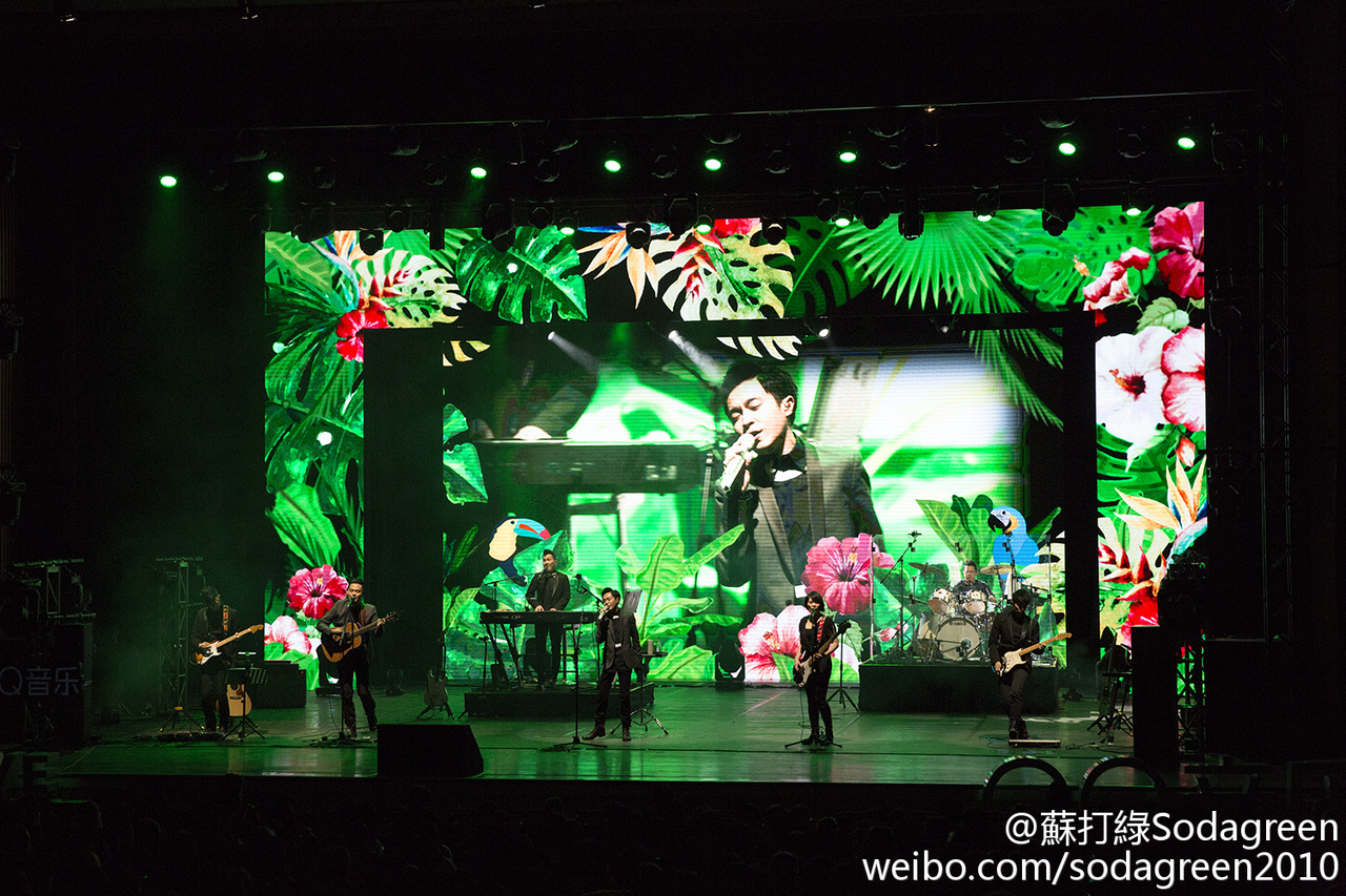 下面是开唱之后的照片,源于QQ音乐的直播截图和苏打绿官方微博的晒图: