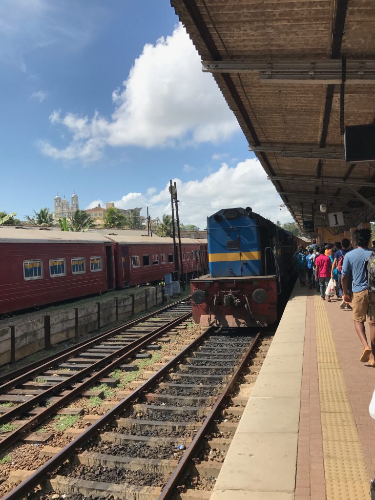 之后第四天是最后一天了,一早上坐车去了火车站,路上还遇到了高跷渔夫,挂在树上路人拍照,然后给一些小费,百度大家拍的高跷渔夫都特别美,无奈我拍照技术太差……然后坐火车去首都科伦坡,坐火车是因为想体验海上火车,有一段火车是在海边的,景色很漂亮,可以挂火车拍照,不过很危险(我们离开的第二天,就传出有中国女生挂火车坠落死亡)司机就只能开车去首都啦~!