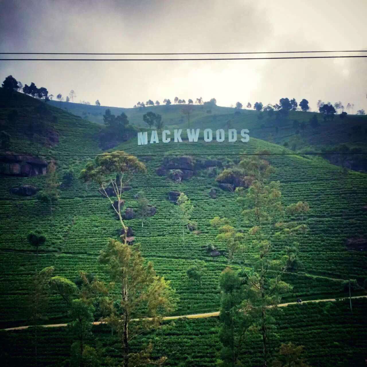 然后又是坐了半天的车,去了Mackwoods买了红茶,斯里兰卡的红茶很出名,带了一些回来,现在还没喝完…… 车程中一直在上山,Mackwoods似乎也是在海拔很高的地方,途径一个地点休息,有山丘有小河有瀑布,拍了一张全景(没拍出瀑布),之后就到了Mackwoods,和好莱坞一样,有一个山丘上写着Mackwoods!