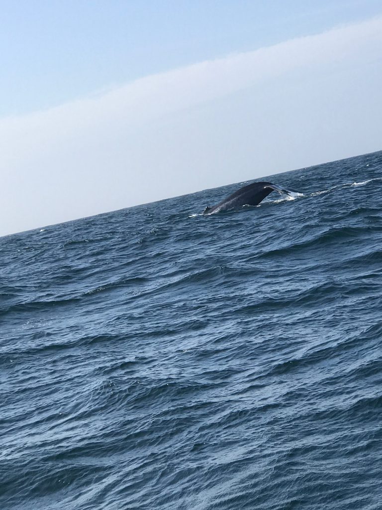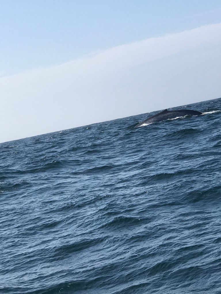 然后第三天早上牛逼了,出海去了,从海边坐船出发,一直往深海去,坐了一个多小时,为了看鲸鱼,坐船出海刚开始没有什么感觉,后来在海中,距离陆地很远已经看不见了,船停下来等鲸鱼出现的时候,船一摇一摆突然很难受,很多人都晕船吐了,我也快要吐了,好在看到了鲸鱼出现了几次,有喷水,不过看不到全身,也算没有白白难受~!