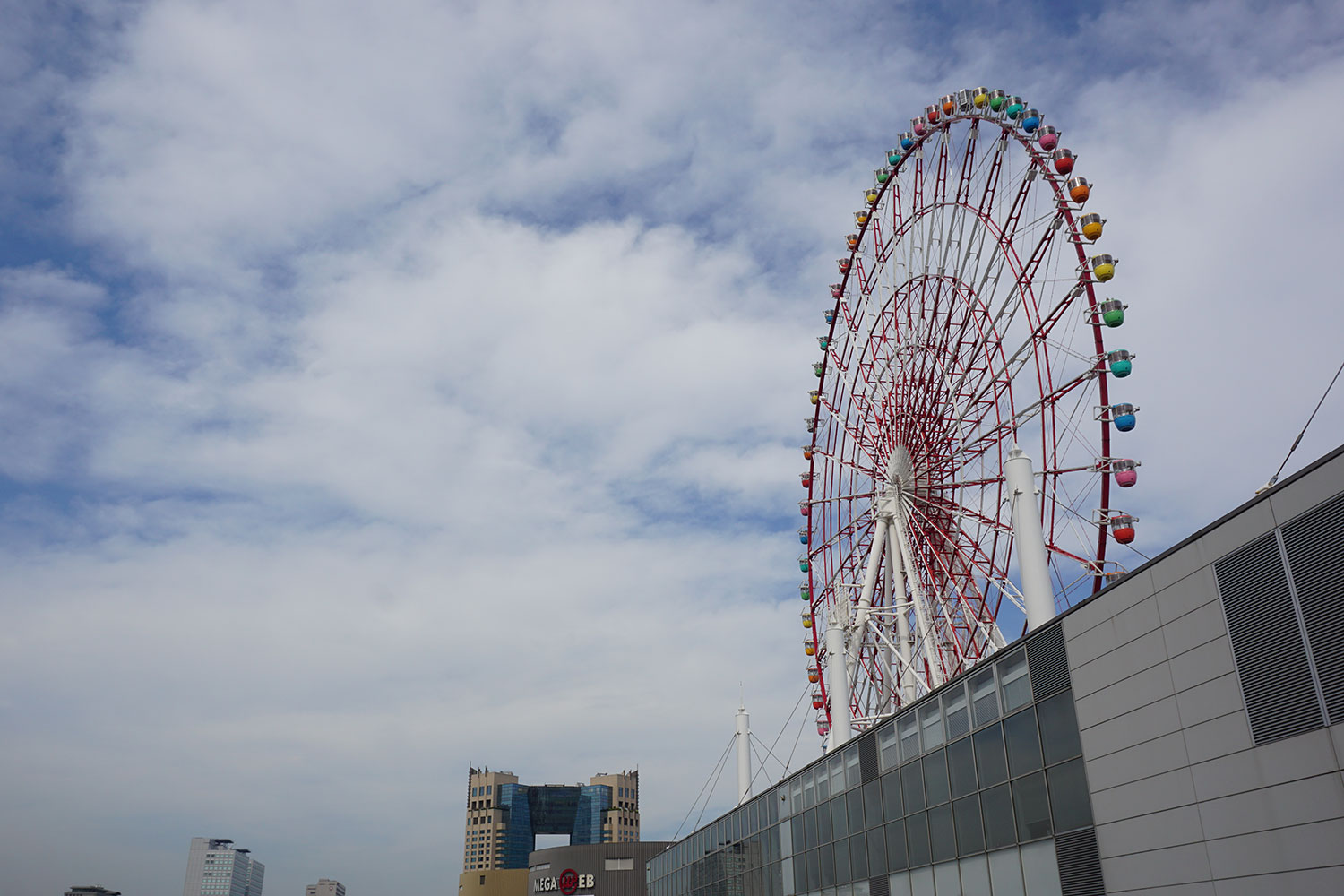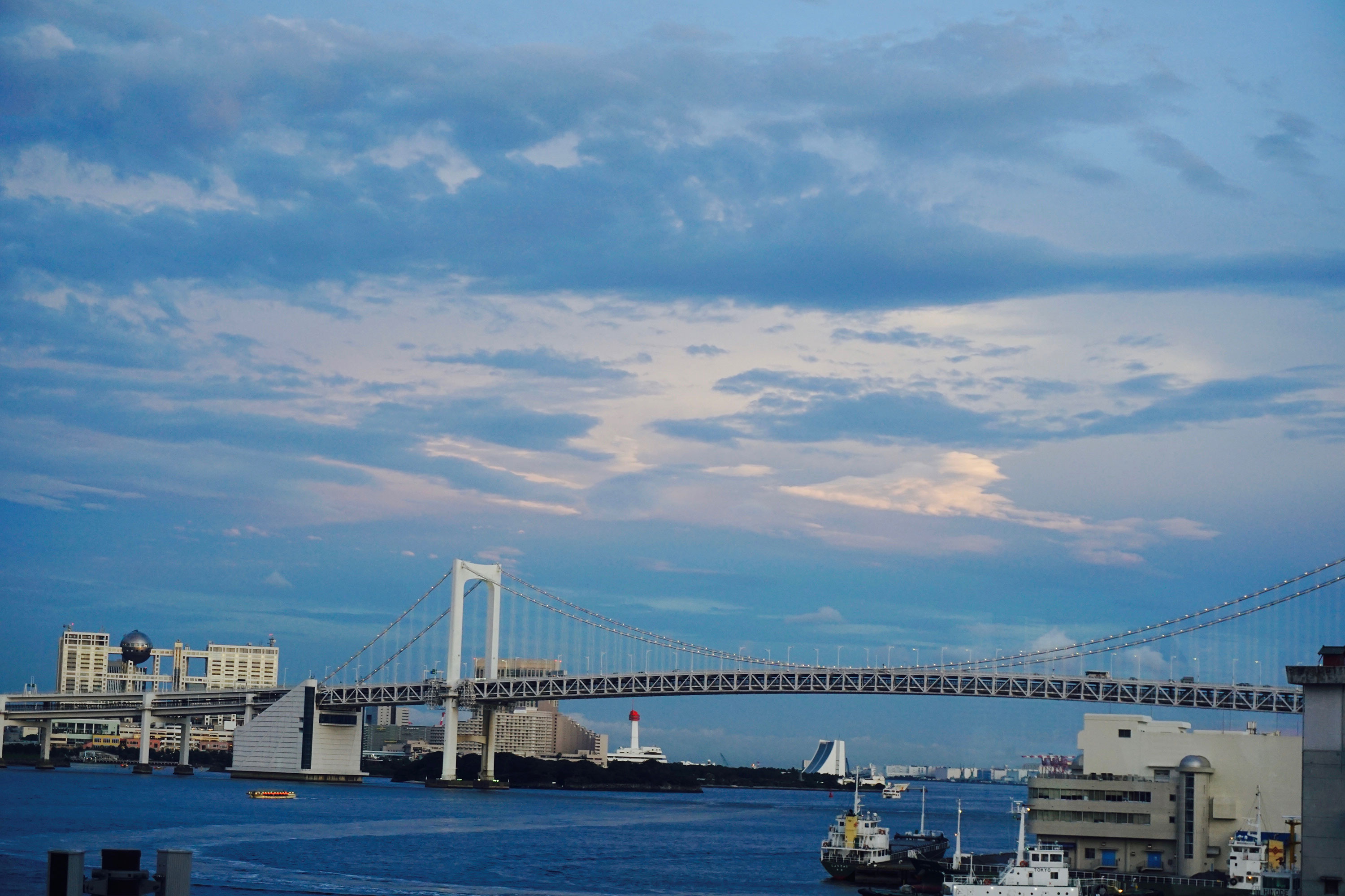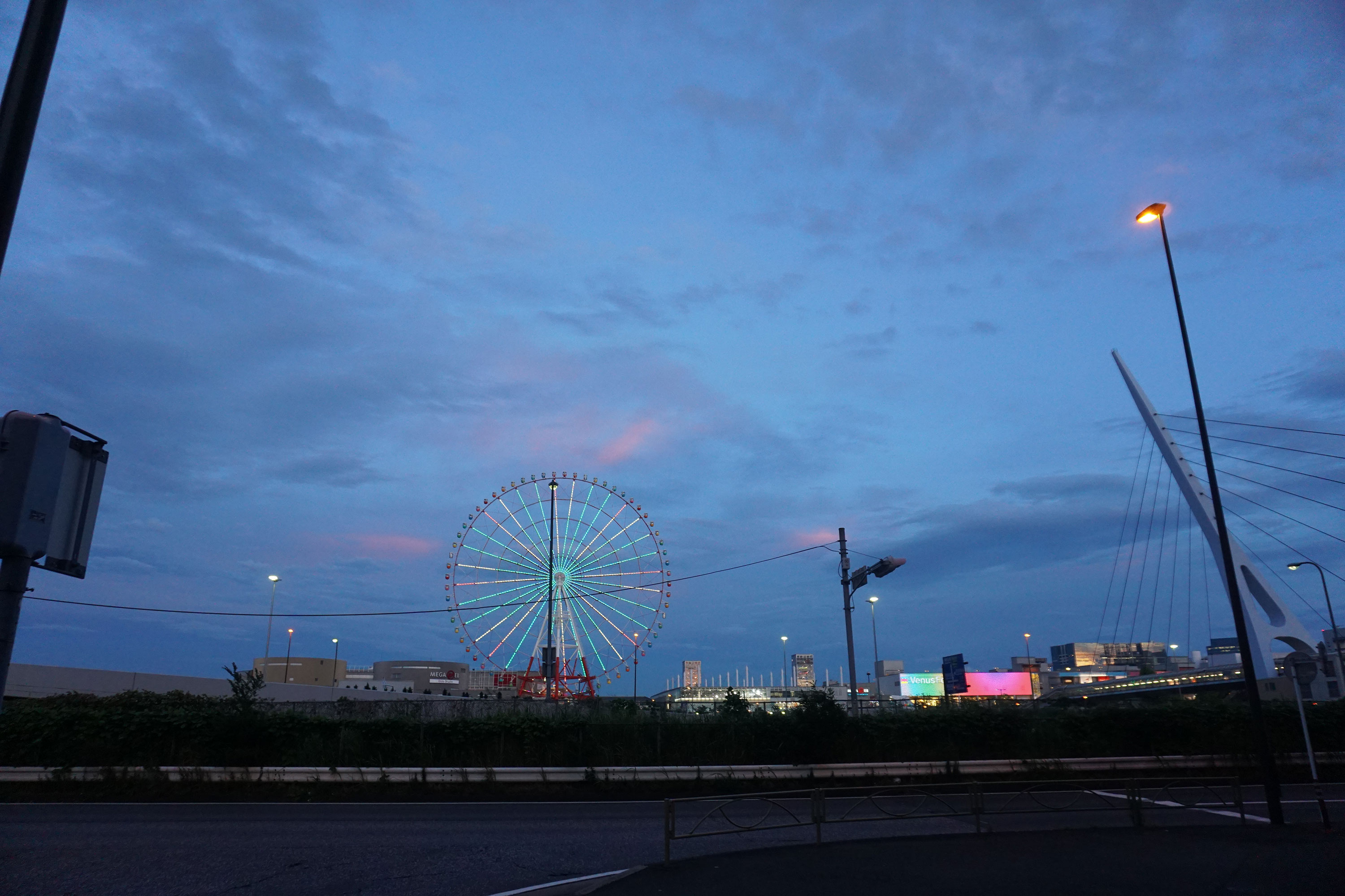 之后去了台场海滨公园附近,坐的是海鸥线,印象很深的是列车是无人驾驶的,真·无人驾驶,并没有驾驶舱,直接坐在第一节车厢,能直接看到前方的轨道… 然后下了车就迷路了,真的…迷路了,瞎jb走了半天,不知道去了哪里,看到了摩天轮,目的地应该就是那边,不知道为啥迷路了,不过当时的风景真的很美,随便拍了几张照片,感觉就像画一样: