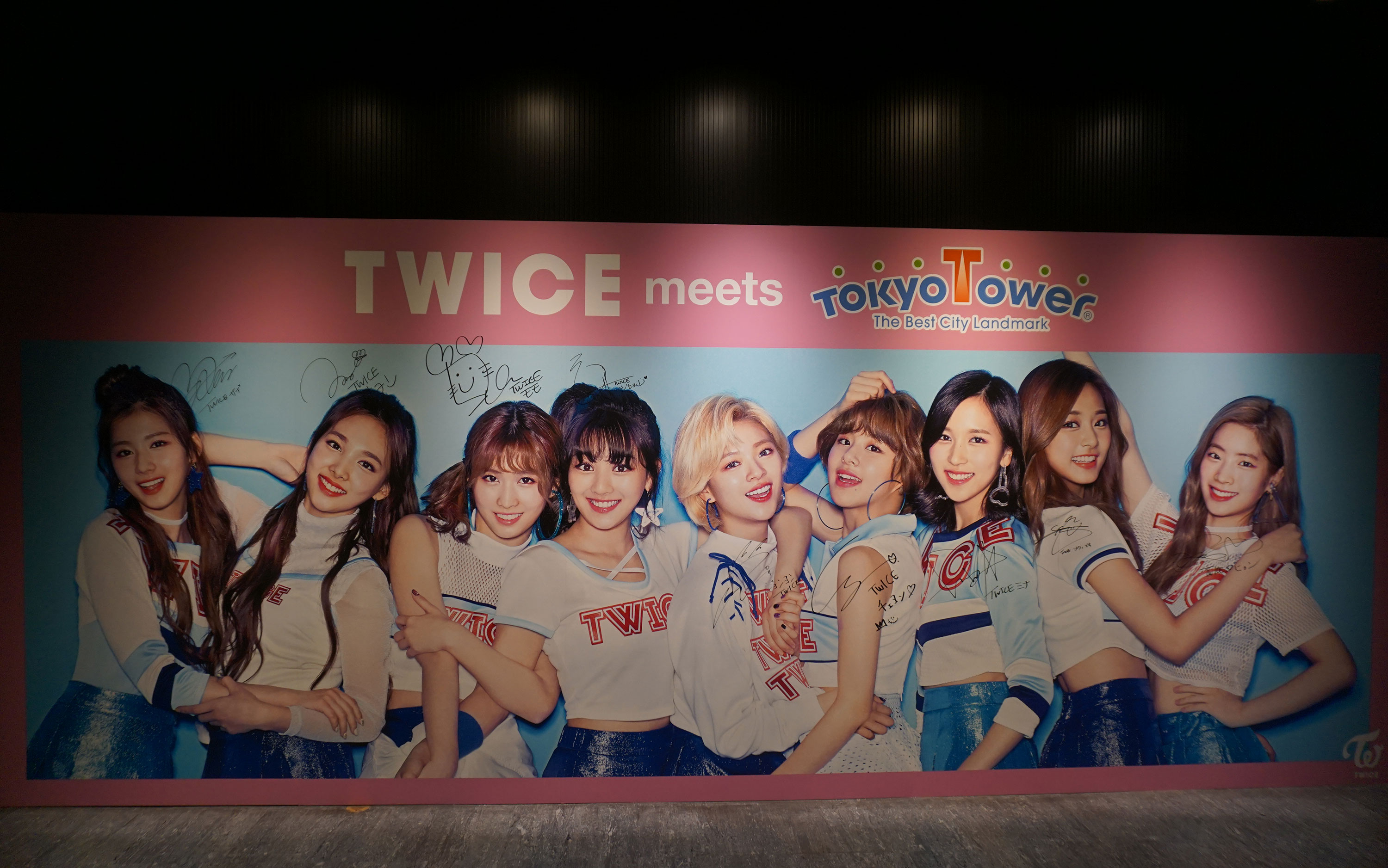 在观光层里,有一面墙上印着一个组合的海报,都是美少女~不过我不认识这个组合,百度了一下,好像这组合中日韩人都有呢。