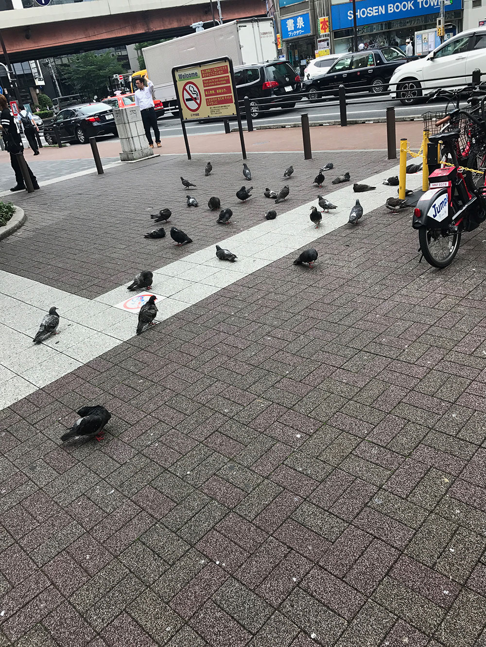 之后前往秋叶原,下了地铁女票说想嘘嘘,于是乎去了地铁站的公用洗手间,出来以后满脸不可思议,据说马桶很干净,很高级,高级到都不太会用,研究了一会才知道怎么冲水… 在附近看到地上有一群鸽子,在国内很少见到,至少在上海这边真没见到过,我印象中都是在树上才能看到~