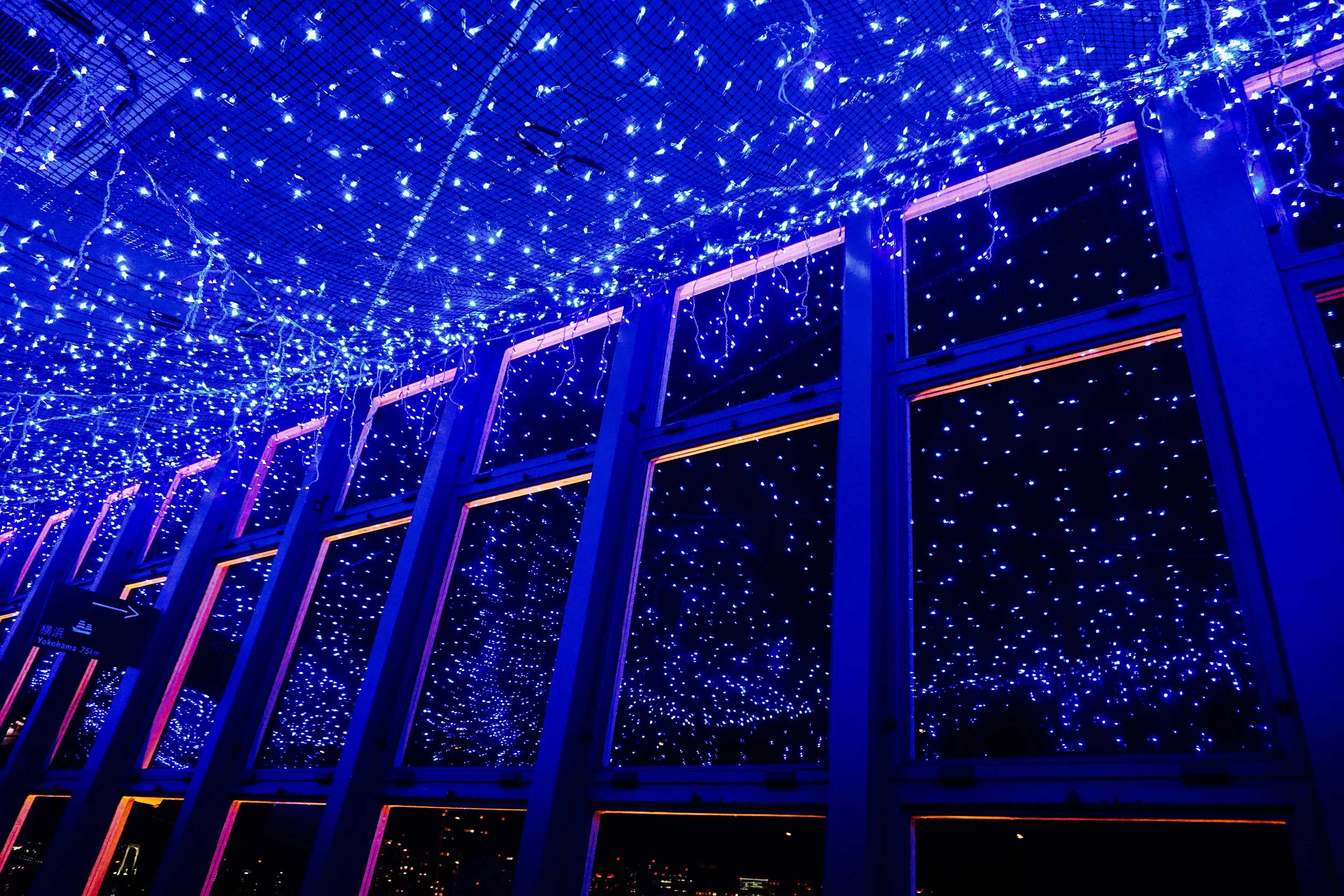 之后去的台场,就是之前去过一次但是迷路的地方,重新看了一下路线,不死心的还是想去~ 台场海滨公园附近有一个商场,本来想进去吃点东西,进去以后头顶天花板上的应该是大屏幕,描绘着天空的样子,非常鹅妹子嘤。