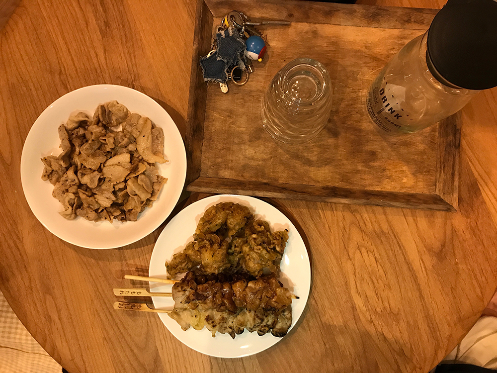 晚上在住处附近的一家店吃炭火烤肉,点菜的时候一脸懵逼,菜单都是日语,看不懂,也不知道分量,服务员小哥蛮帅的,也不懂英语,场面一度很尴尬,最后掏出谷歌翻译,我打一句话,他打一句话的这样点菜……
