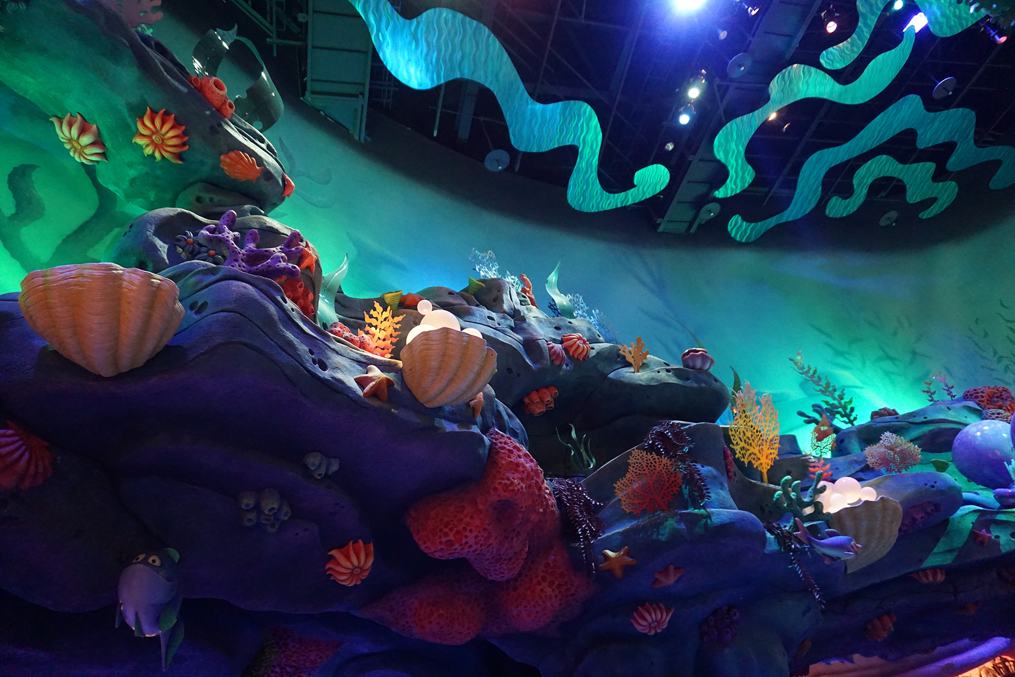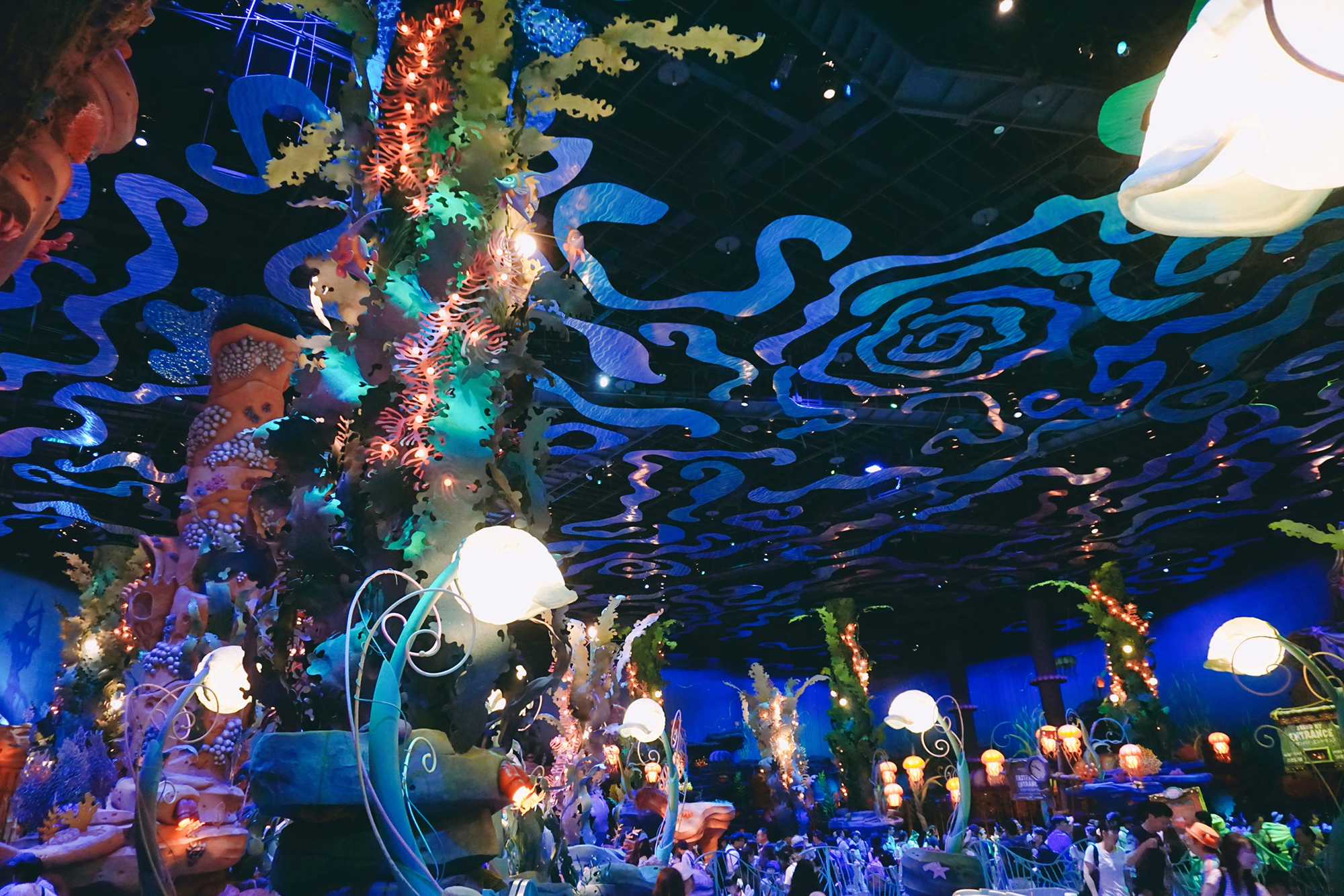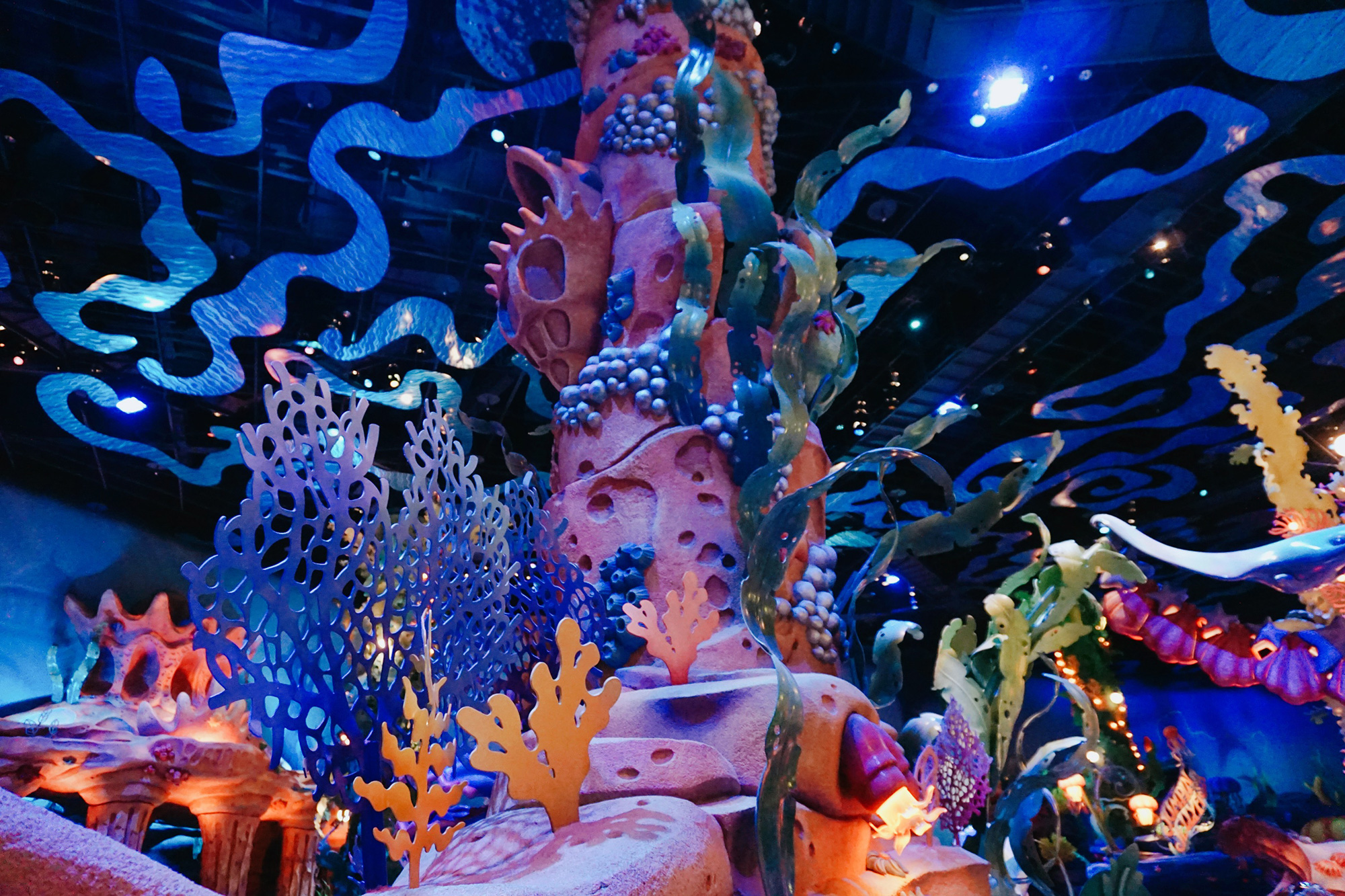 往下一层的话,头顶都是蓝色的灯,看上去特别梦幻,不过手机和相机拍不出效果呀,不过大家能不能感受到~